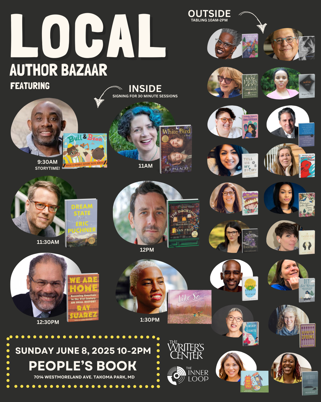 I’m honored to be included in a stellar lineup of writers at the People’s Book Local Author Bazaar on Sunday, June 8 from 10am to 2pm in Takoma Park, MD. We’ll be signing, selling, and sharing our latest publications. If you’re in the area, come by to support local authors and say hello!